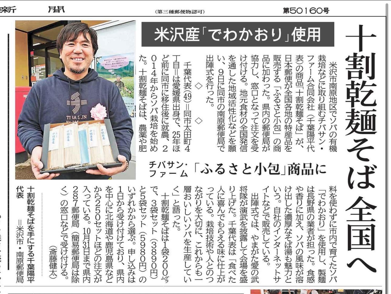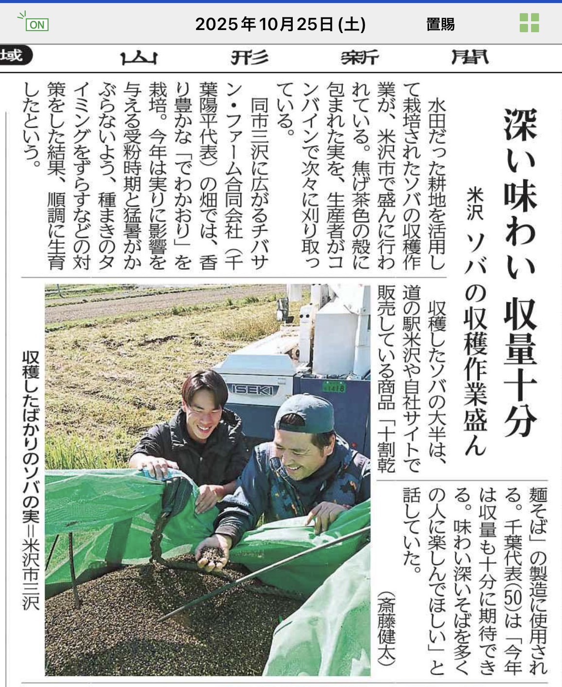 2025年10月、山形新聞にてそばの収穫について掲載されました。